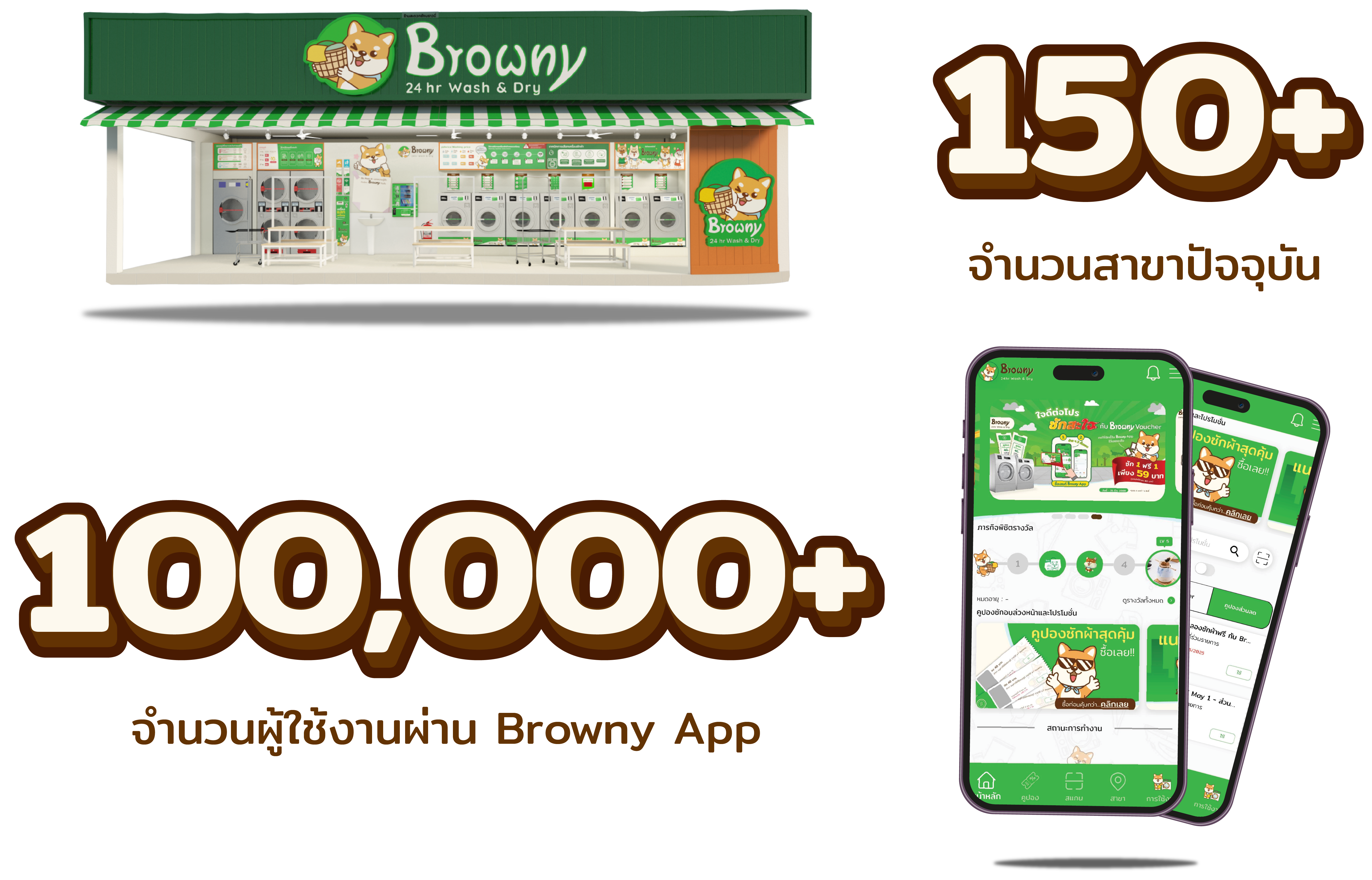 Browny เป็นแฟรนไชส์ Laundromat ที่เราจะสร้าง พื้นฐาน ของธุรกิจจากแบรนด์ ผ่านความเป็นครอบครัว ของ Browny ผู้ที่มาใช้บริการจะรู้สึกได้ถึงความอบอุ่น เสมือนบ้านอีกหลังของทุกคนช่วยให้เรื่องการซักผ้าที่ เหนื่อยหน่ายกลายเป็นเรื่องสนุกของทุกคนในครอบครัว