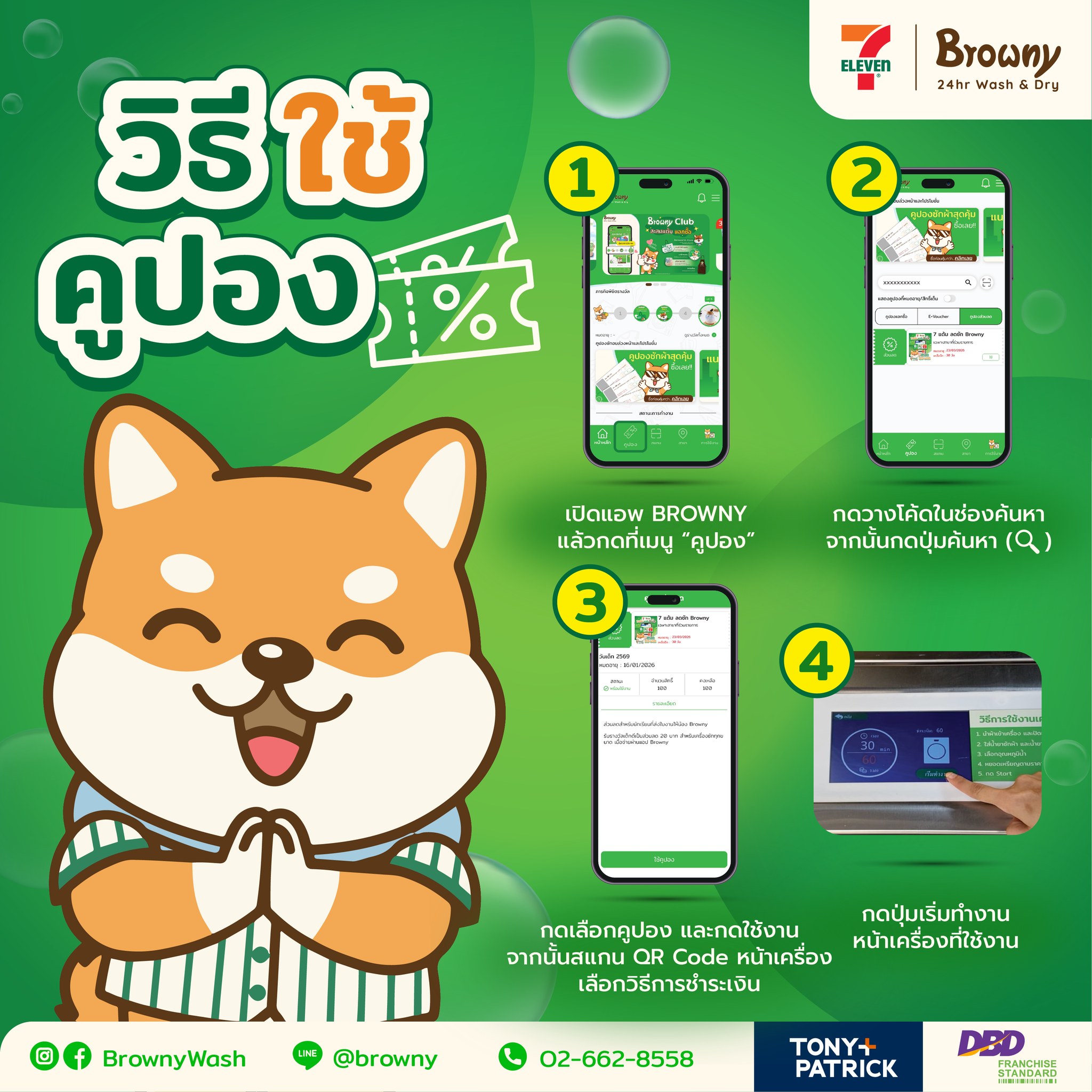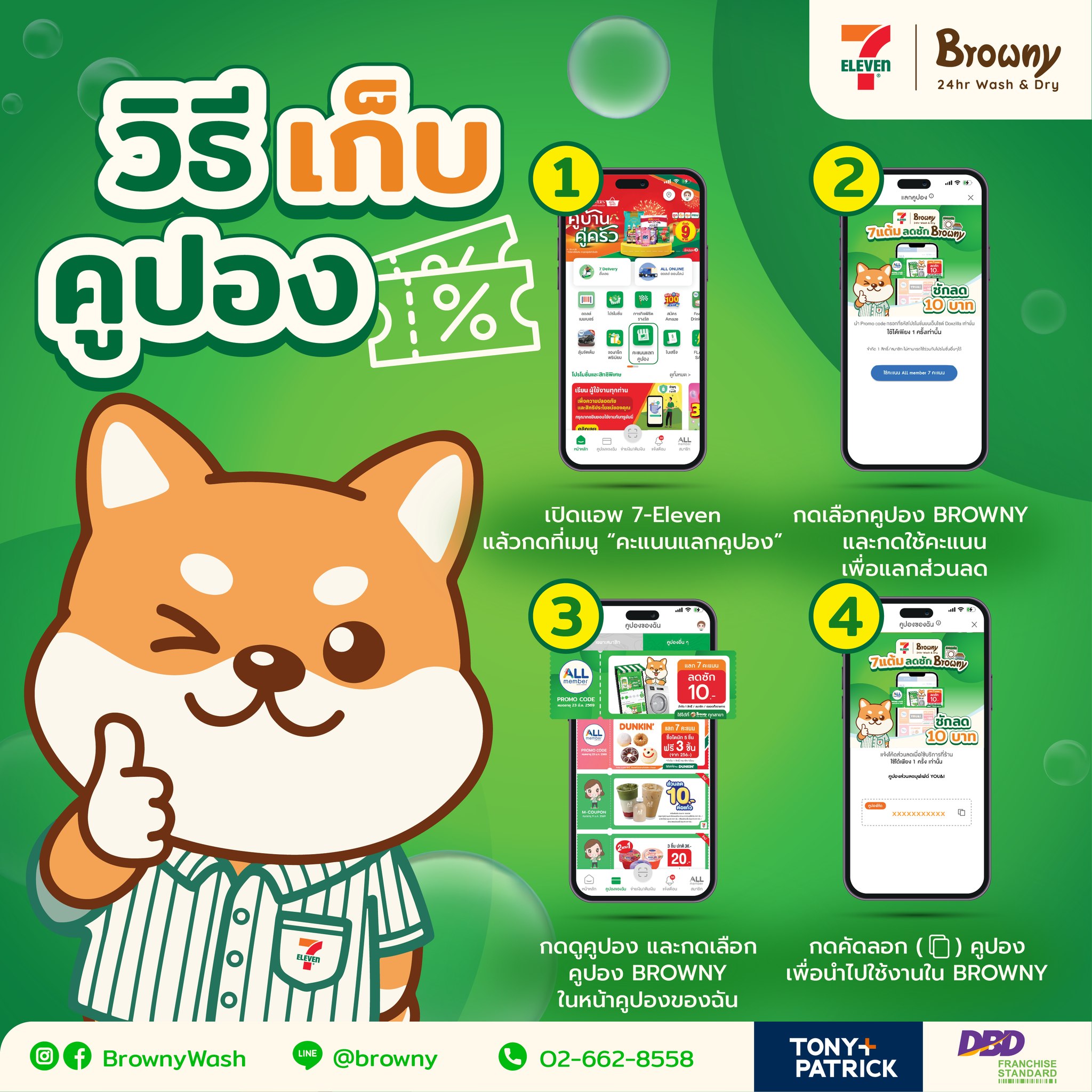 ร้านสะดวกซัก Browny ร่วมกับ 7-Eleven แจกส่วนลด 10 บาท ให้สมาชิก ALL Member ซักผ้าคุ้มกว่าใคร