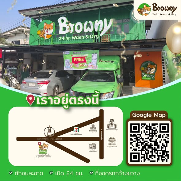 เปิดบ้านใหม่ต้อนรับความสะอาดอย่างเป็นทางการแล้วฮับบบ! Browny 24hr Wash & Dry สาขาวงเวียนท้าวเซียง จ.ร้อยเอ็ด พร้อมส่งมอบความหอม สะอาด และความใส่ใจระดับพรีเมียมสไตล์น้องชิบะให้พี่น้องชาวสุวรรณภูมิแล้ววันนี้ ใครที่มองหาที่ซักผ้าที่สะอาด ปลอดภัย และบริการดีเยี่ยมเหมือนครอบครัว ต้องไม่พลาดแวะมาทักทายน้องชิบะที่สาขานี้นะฮ้าบบบ