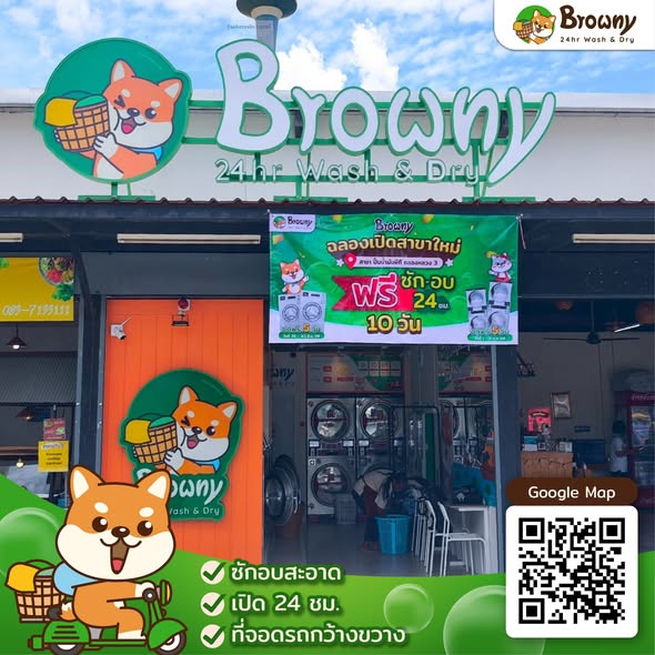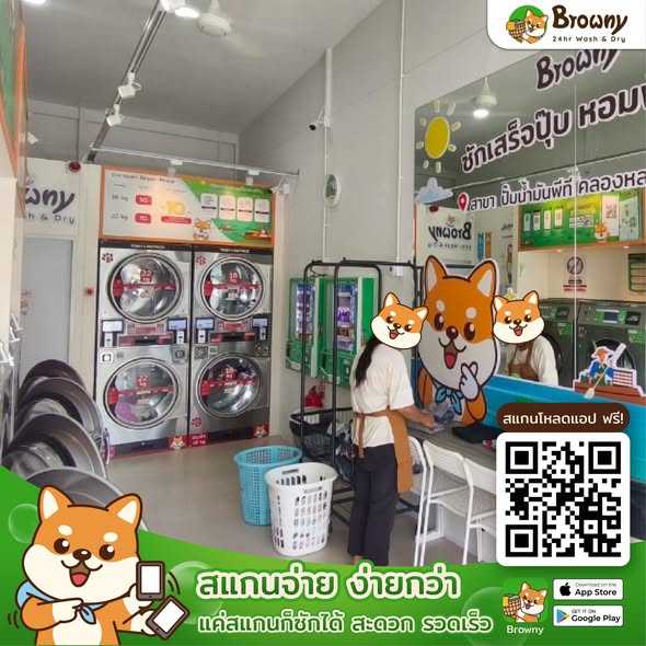 มาถึงแล้วฮะ! มาตรฐานความสะอาดระดับพรีเมียมที่ใครๆ ก็ไว้วางใจ Browny 24hr Wash & Dry พร้อมเปิดบ้านดูแลเสื้อผ้าของพี่น้องชาวคลองหลวงแล้ววันนี้! จะผ้ากองโตจากทั้งสัปดาห์ หรือผ้านวมผืนใหญ่ที่ซักยากๆ ก็หิ้วมาให้น้องชิบะดูแลได้เลย รับรองสะอาดหมดจด หอมนุ่มฟู พร้อมใส่ทันทีแน่นอนฮะ