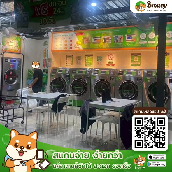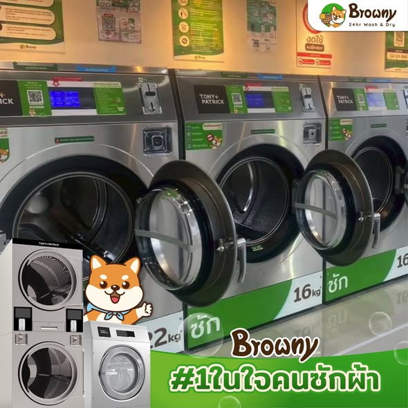 สนใจอยากเริ่มต้นธุรกิจ ร้านซักผ้าหยอดเหรียญ ที่มั่นคงและมีทีมงานมืออาชีพคอยซัพพอร์ตการตลาดให้ตลอดปี Browny พร้อมให้คำปรึกษาและออกแบบร้านให้ฟรี! ทักหาพี่ชิบะได้เลยที่ Line ID: @browny