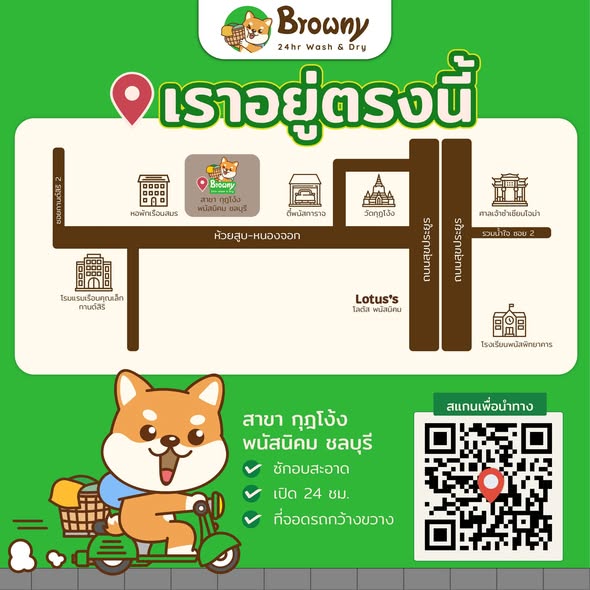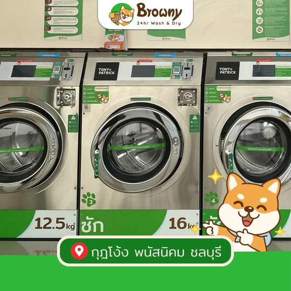 ยินดีต้อนรับพี่น้องชาวพนัสนิคมเข้าสู่ครอบครัวน้องชิบะฮับ! ร้านสะดวกซัก Browny 24hr Wash & Dry สาขาใหม่ล่าสุดที่ กุฎโง้ง พนัสนิคม ชลบุรี พร้อมเปิดให้บริการแล้วฮับ งานนี้เราไม่ได้มาแค่ตัว แต่มาพร้อมโปรโมชั่นสุด Exclusive เพื่อมอบความสะอาดแบบ Love & Care ให้ทุกคนในราคาสบายกระเป๋าสุด ๆ
