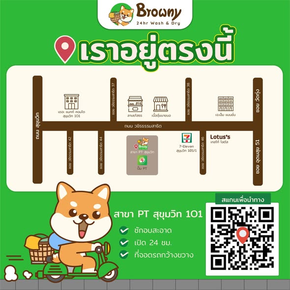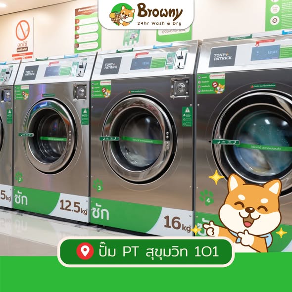 ยินดีต้อนรับพี่ ๆ เข้าสู่ครอบครัวน้องชิบะฮับ! ร้านสะดวกซัก Browny 24hr Wash & Dry สาขาใหม่ล่าสุดที่ ปั๊ม PT สุขุมวิท 101 พร้อมเปิดให้บริการแล้วฮับ งานนี้เรามาพร้อมโปรโมชั่นฉลองเปิดร้านสุดคุ้ม มอบความสะอาดแบบ Love & Care ให้ทุกคนในราคาสบายกระเป๋า รับรองว่าแฮปปี้ทั้งคนซักและคนใส่แน่นอน!