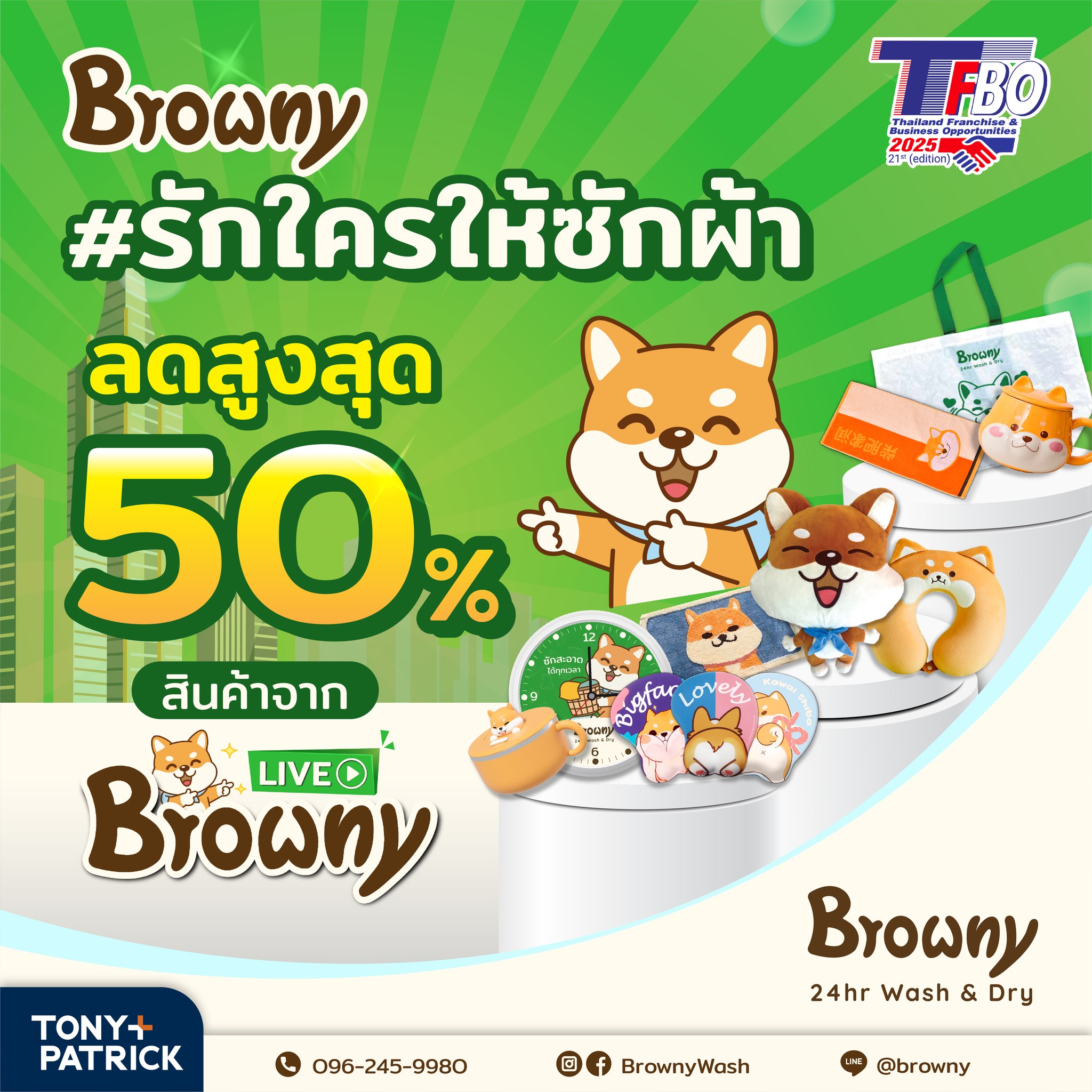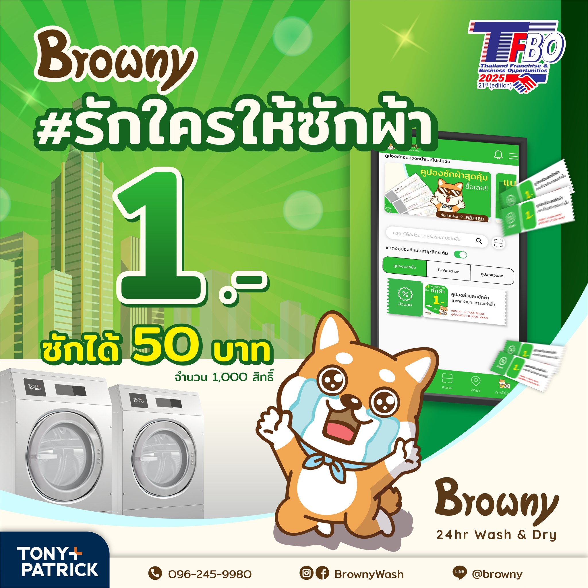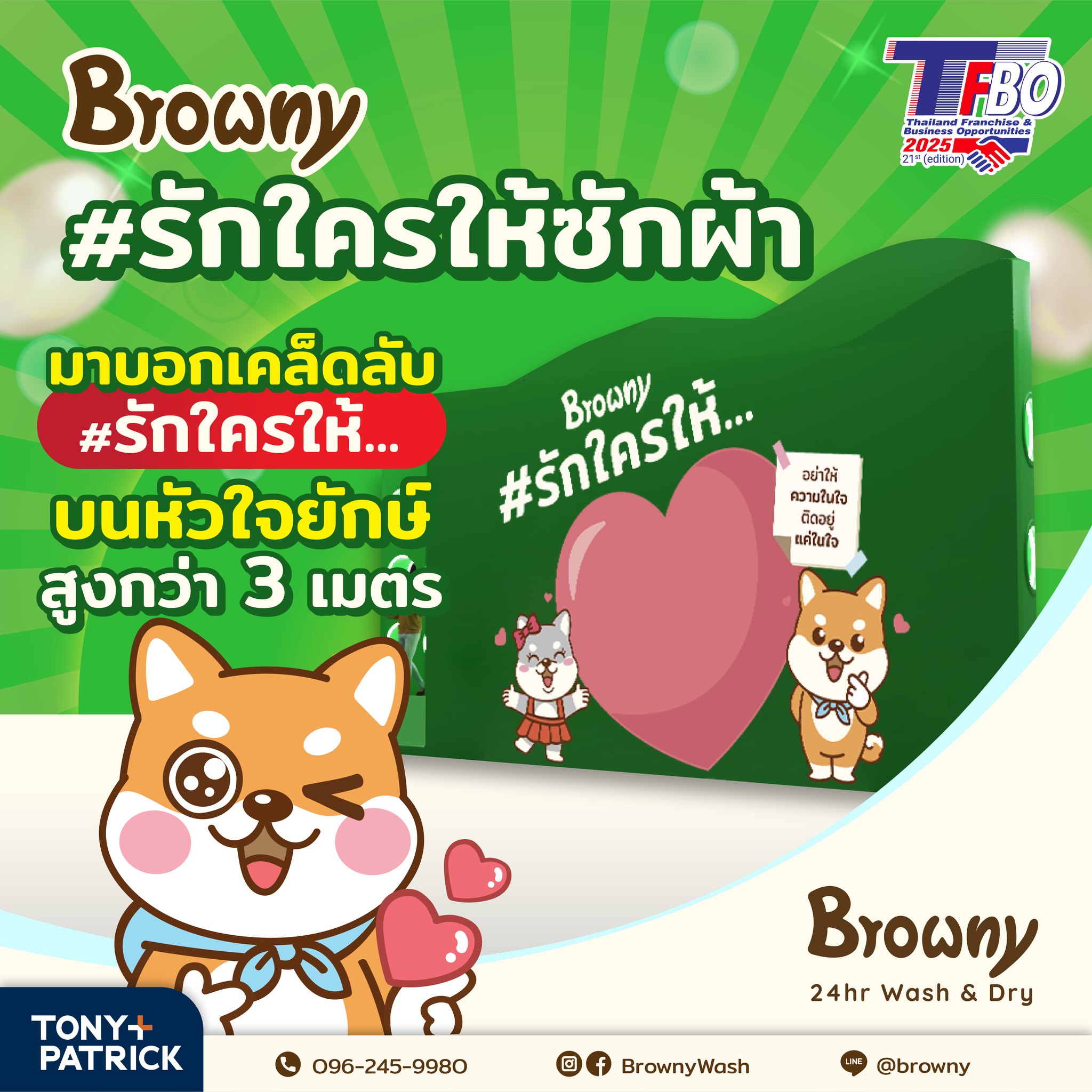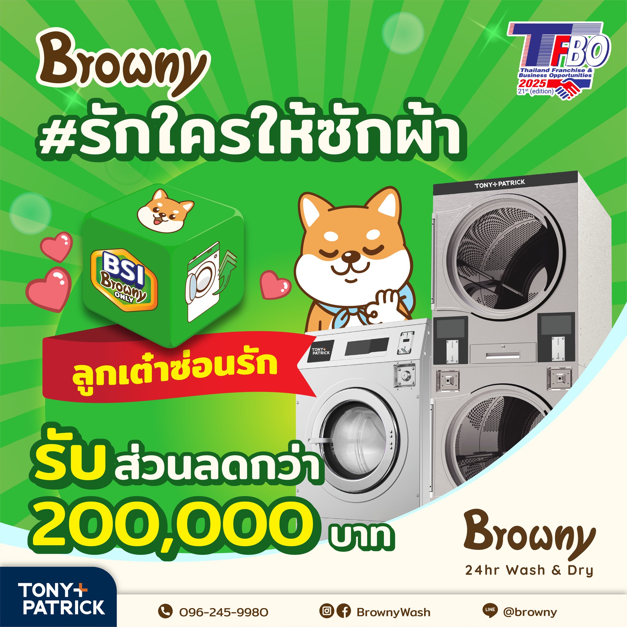 เตรียมตัวให้พร้อม! Browny 24hr Wash & Dry ขนทัพความสนุกและโปรโมชั่นที่ “รัก” ที่สุดไปรอทุกคนในงาน TFBO 2025 งานนี้ไม่ได้มีแค่เรื่องธุรกิจ แต่เรามีกิจกรรมสาดความสุขให้ลุ้นรางวัลกันแบบจุกๆ ถึง 3 กิจกรรมหลัก และสิทธิพิเศษอีกเพียบฮะ!