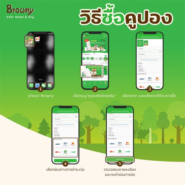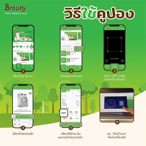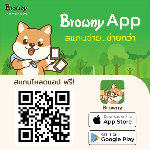 - การใช้งาน: ใช้ได้เฉพาะ เครื่องซักผ้า ณ สาขาที่รองรับระบบ Browny App หรือ Browny Pay
