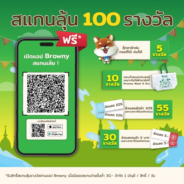 ซักอบฉ่ำรับสงกรานต์! Browny Wash & Dry แจกหนัก 100 รางวัล แค่สแกนลุ้นรับโชคทันที