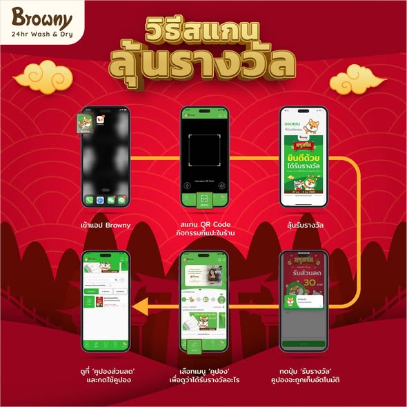 ซักผ้าตรุษจีนนี้มีแต่คุ้ม! Browny 24hr Wash & Dry จัดแคมเปญ HAPPY CHINESE NEW YEAR 2025 Festive Scan แจกอั่งเปาให้คนรักผ้า แค่สแกนซักหรืออบขั้นต่ำ 30 บาท ผ่านแอปพลิเคชัน Browny ก็ได้รับสิทธิ์ลุ้นรางวัลทันที 100% ตั้งแต่วันที่ 27 ม.ค. – 2 ก.พ. 68 นี้เท่านั้นนะฮ้าบบบ