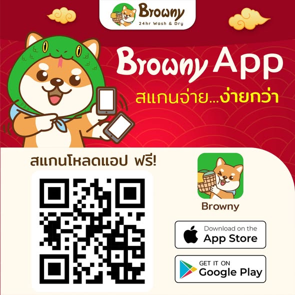 ยิ่งซักยิ่งได้! ร้านสะดวกซัก Browny แจกอั่งเปาพาสุขใจ ลุ้นรางวัลใหญ่ผ่านแอปฯ 24 ชม.