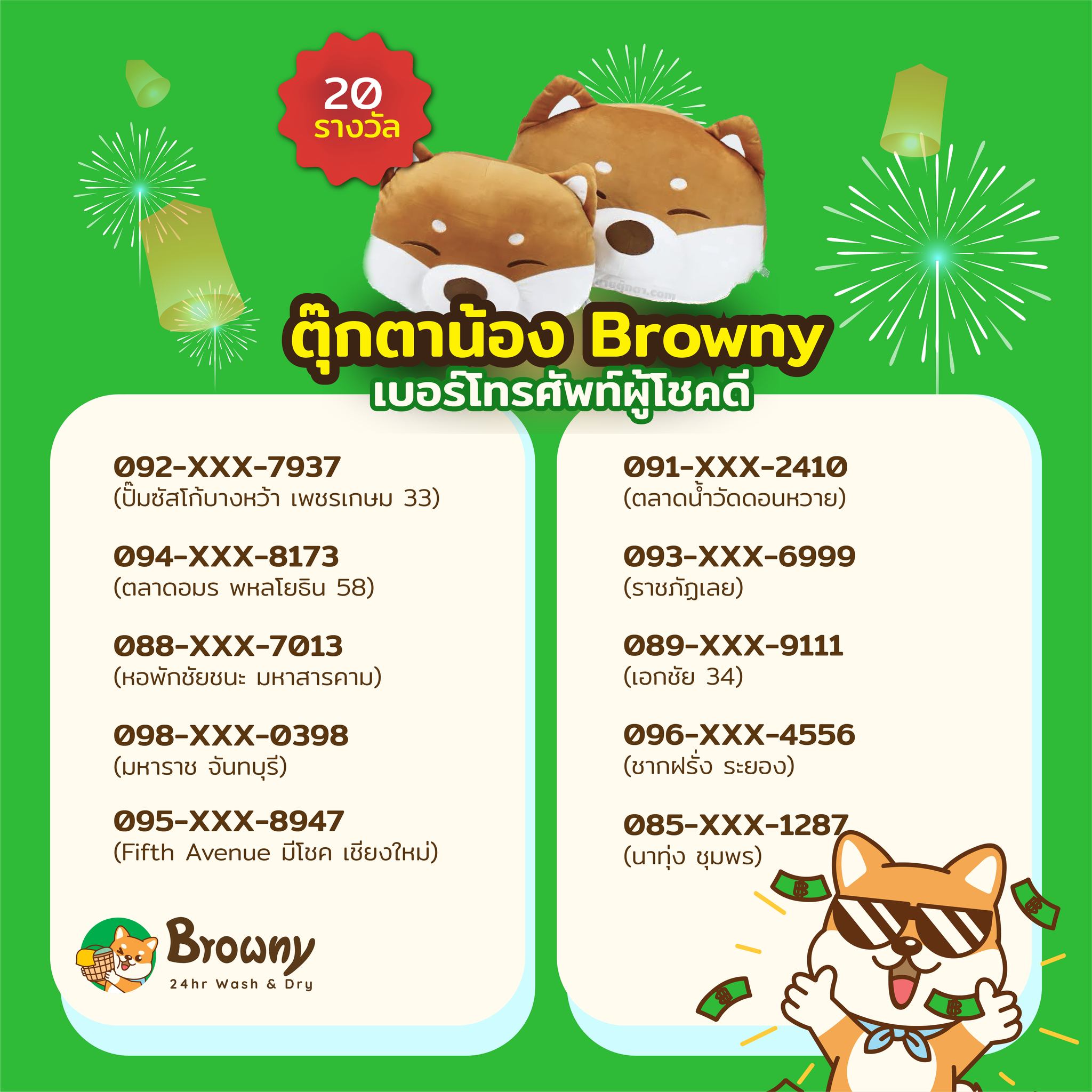 📞 กระซิบจากน้อง Browny: เร็วๆ นี้จะมีทีมงานโทรไปแจ้งข่าวดีกับผู้โชคดีทุกท่านอีกครั้ง อย่าลืมรับสายเบอร์แปลกกันน้าาา เดี๋ยวจะพลาดรางวัลใหญ่ไปฮับ!