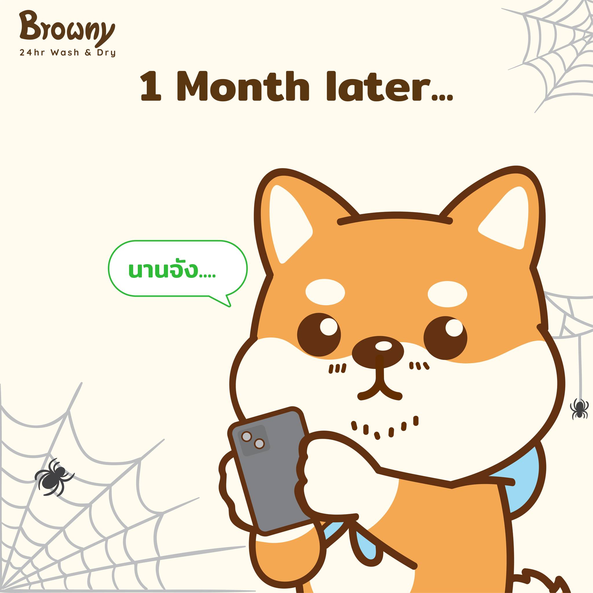 ไม่อยากรอจนท้อ… พุ่งตัวมาที่ Browny Wash & Dry สาขาใกล้บ้านคุณได้เลยนะฮับ น้องชิบะรอรับใช้อยู่!