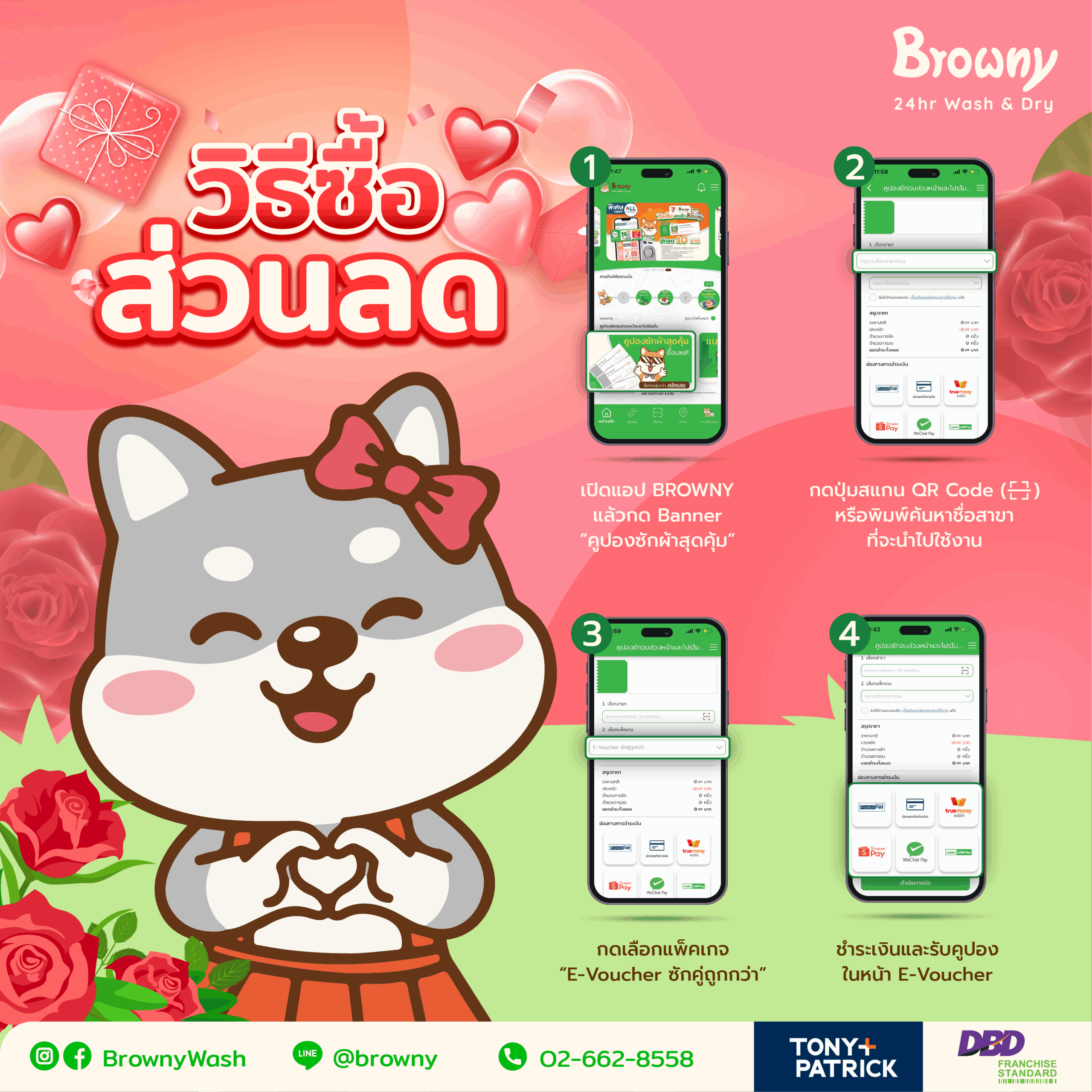 ร้านสะดวกซัก Browny ส่งต่อความรัก 520 หว่ออ้ายหนี่ ด้วย E-Voucher สุดคุ้ม!