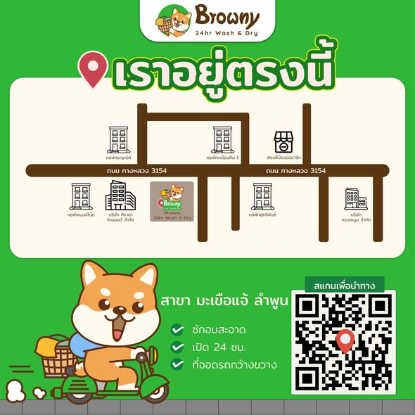 โฮ่ง! ชาวลำพูนมีเฮ เพราะ Browny Wash & Dry บุกไปหาถึงที่แล้วครับ! เราพร้อมเปิดบ้านใหม่ที่สาขามะเขือแจ้ ให้บริการซัก-อบผ้าด้วยเครื่องอุตสาหกรรมมาตรฐานระดับโลก สะอาด รวดเร็ว ทันใจ ไม่ต้องง้อแดด พร้อมดูแลทุกคนด้วยหัวใจตามแบบฉบับครอบครัวชิบะที่รักคนซักผ้าที่สุดในโลก