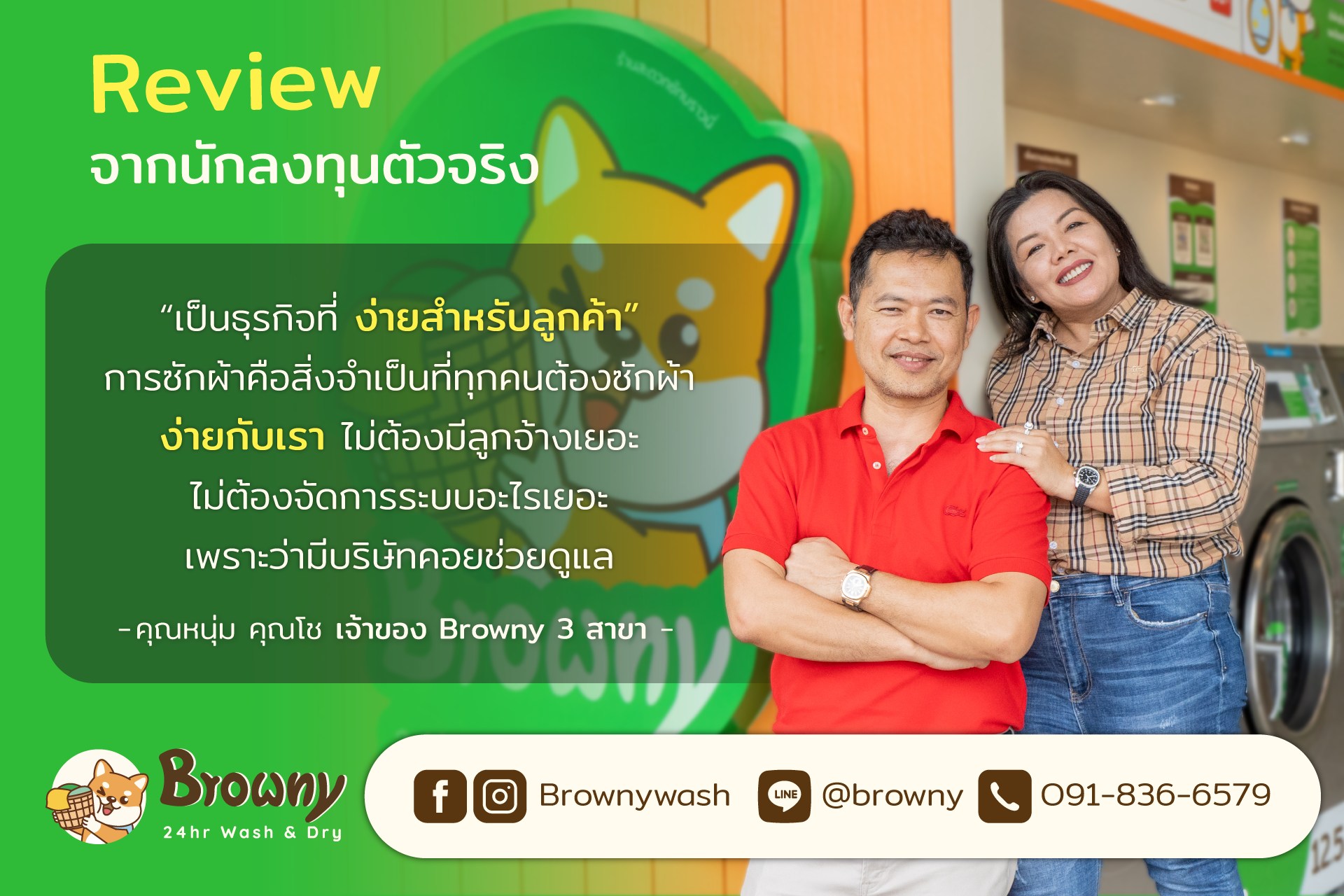 เปิดใจนักลงทุนตัวจริง! ทำไมคุณหนุ่ม-คุณโซ ถึงมั่นใจเลือกขยายสาขากับ Browny 24hr Wash & Dry