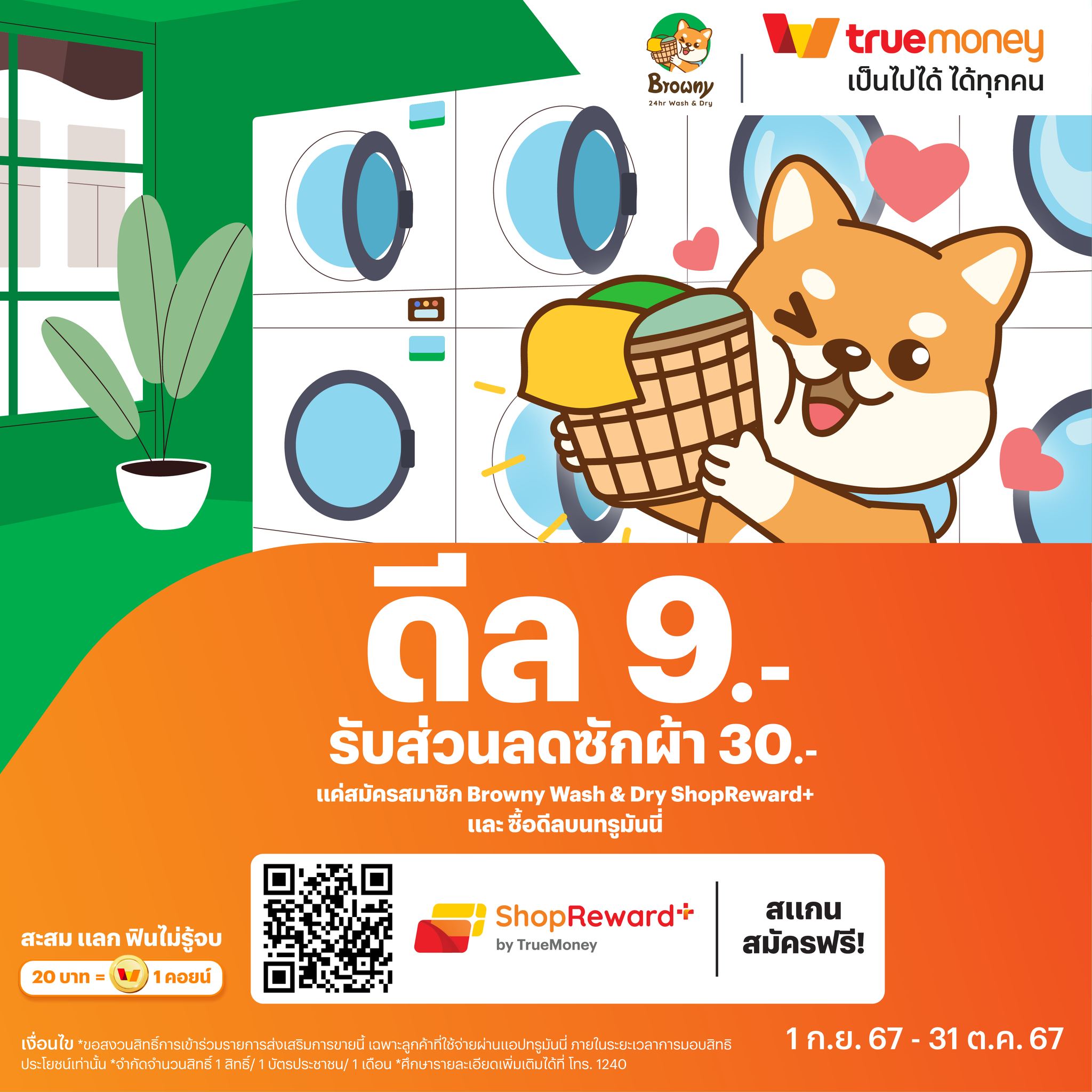 “เดือนสุดท้ายแล้วน้าาา” ใครยังไม่กด ต้องรีบพุ่งตัวด่วน! น้อง Browny อยากให้ทุกคนได้ซักผ้าแบบประหยัดสุดคุ้ม กับดีลลับที่ร่วมกับ TrueMoney และ ShopReward+ จ่ายเพียงหลักหน่วย แต่ได้ส่วนลดหลักสิบ คุ้มกว่านี้ไม่มีอีกแล้วฮับ! ✨🐶