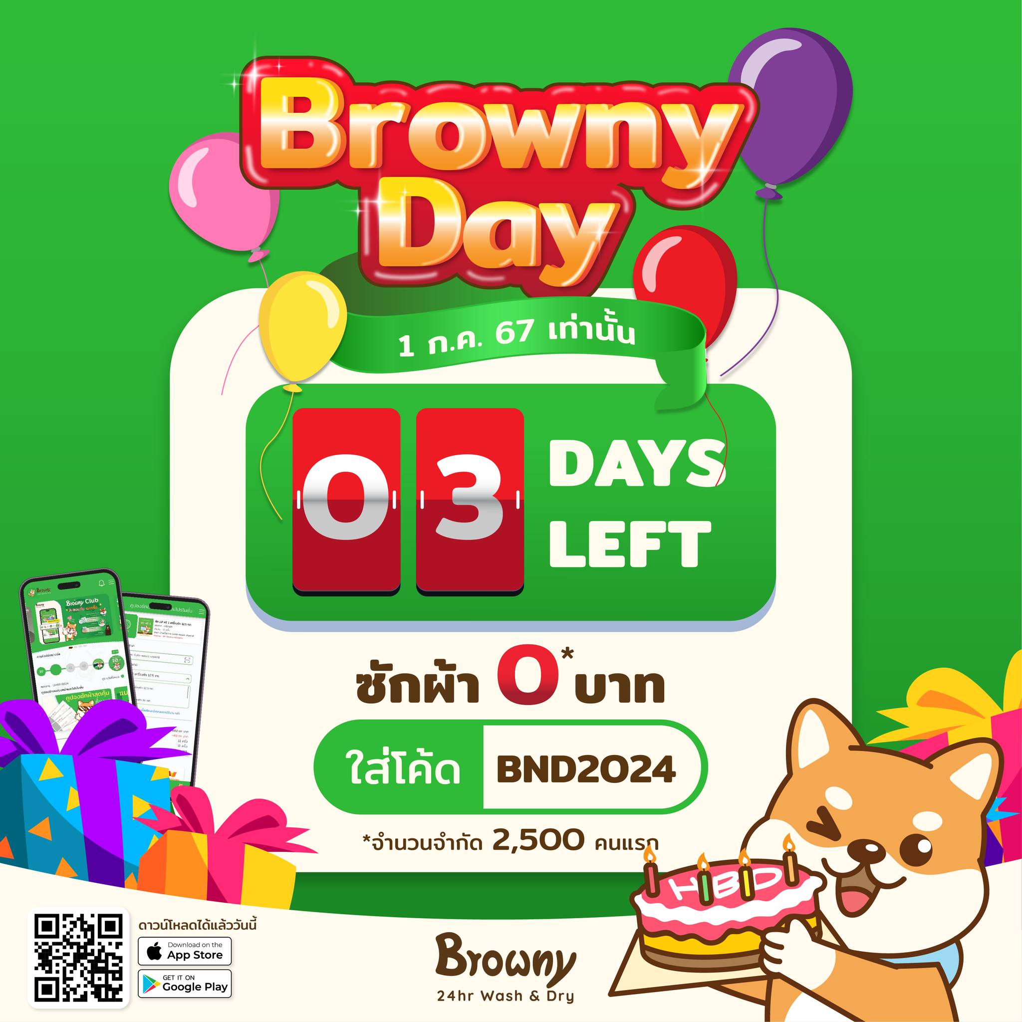 โค้งสุดท้าย! อีก 3 วันซักผ้าฟรีทั่วไทย ฉลอง “Browny Day” วันเกิดน้องชิบะ เตรียมตัวให้พร้อมฮับ