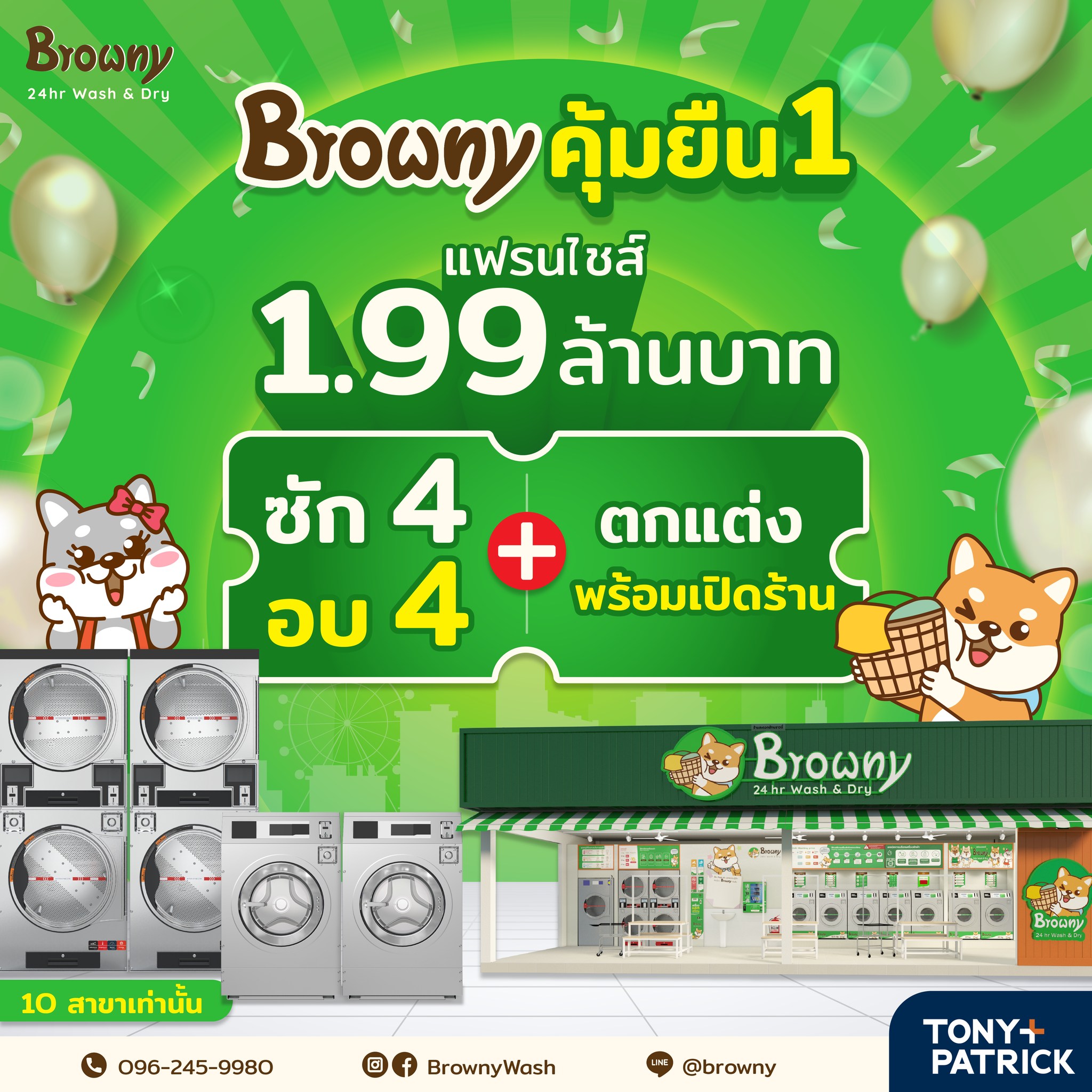 ให้เงินทำงานแทนคุณ! เปิด ร้านสะดวกซัก Browny แพ็กเกจคุ้มยืนหนึ่ง 10 สาขาแรกรับสิทธิ์ด่วน