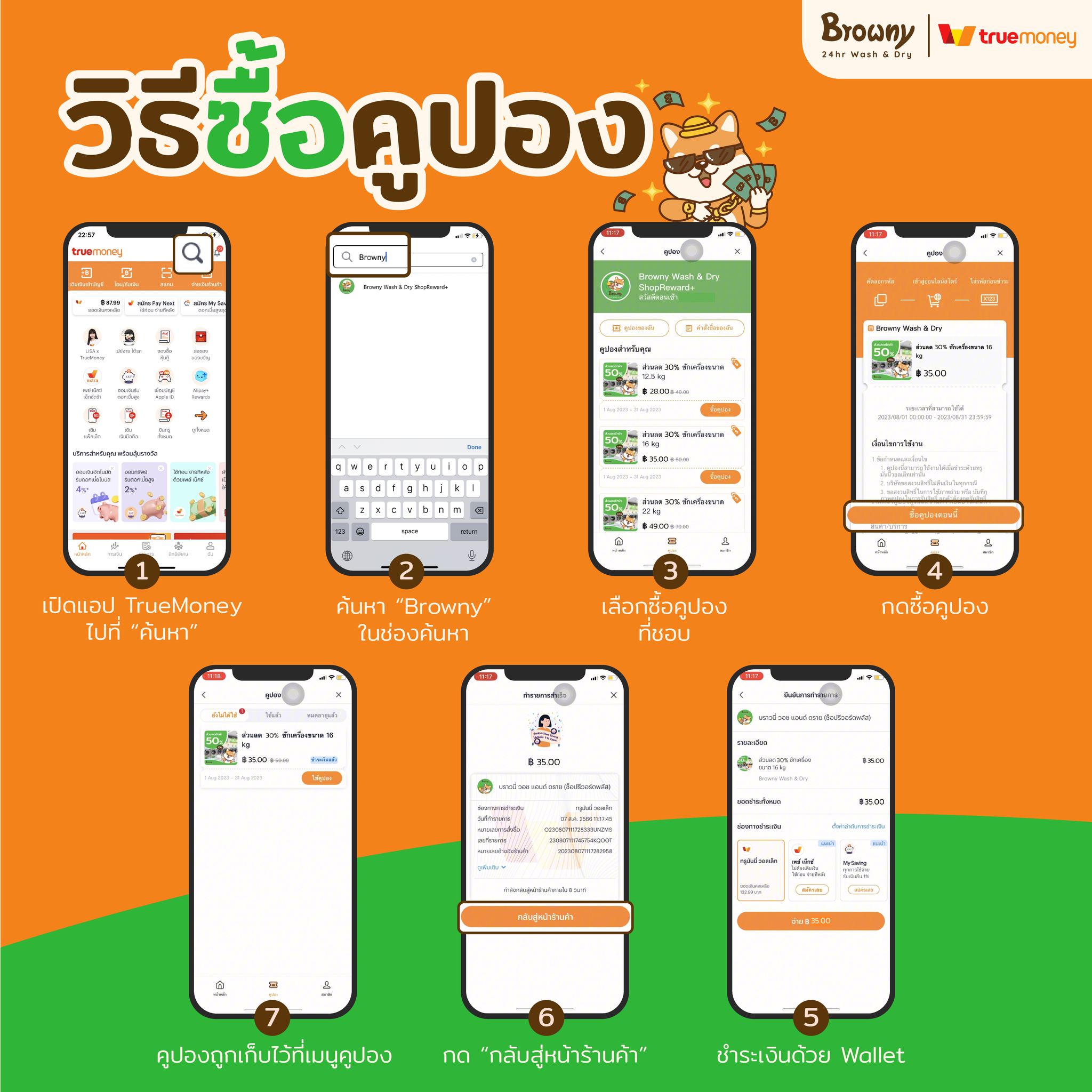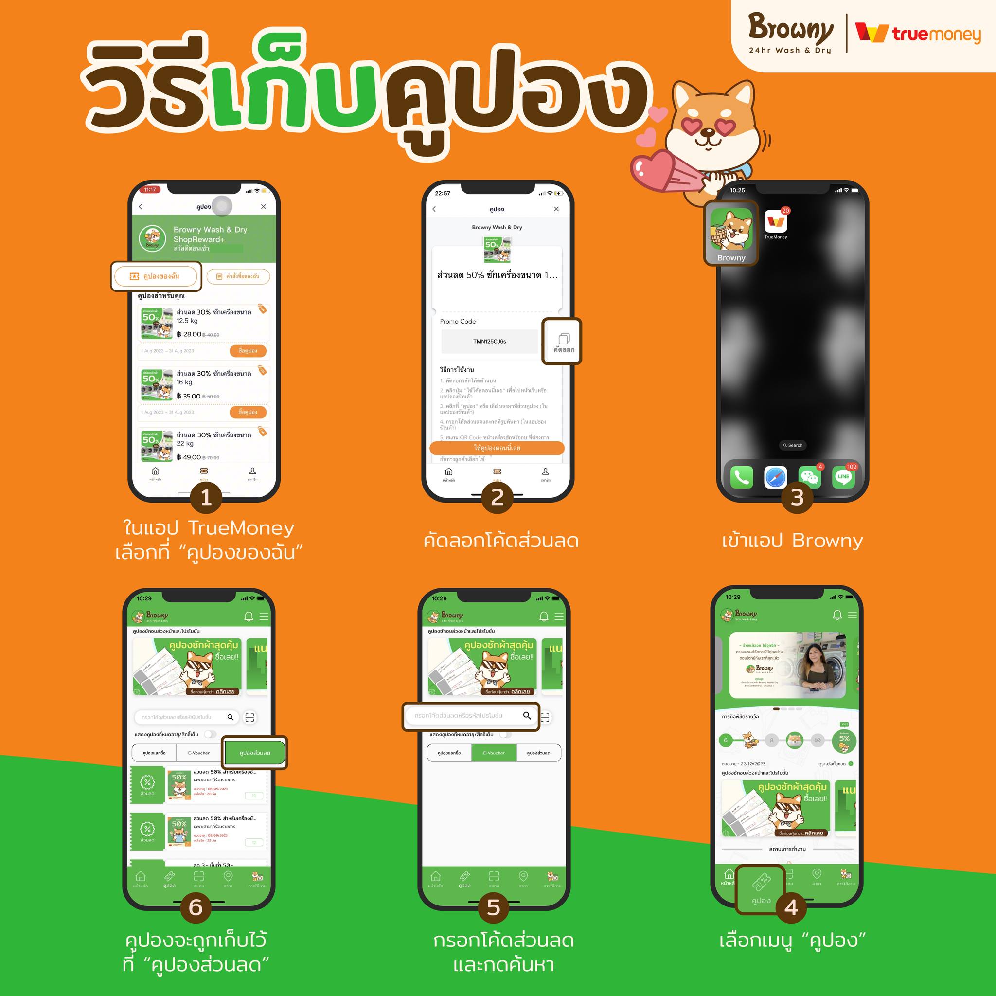 3. ชำระเงินผ่าน TrueMoney แล้วคัดลอก “โค้ดส่วนลด” มาใส่ในแอป Browny