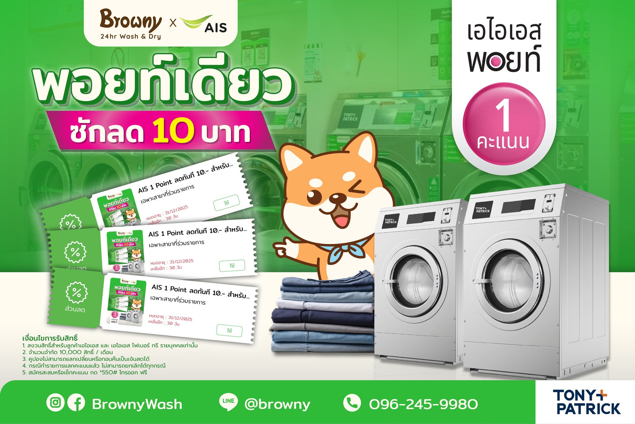 ข่าวสาร โปรโมชั่น สิทธิพิเศษ ทั้งหมด Browny Tips Hamburger Toggle Menu ข่าวสาร โปรโมชั่น สิทธิพิเศษ ทั้งหมด Browny Tips Hamburger Toggle Menu Search for:Search Button Search for:Search Button 🎉 แคมเปญลดข้ามปี! ซักผ้ารับส่วนลดสูงสุด 20 บาท ที่ Browny12 ธันวาคม 2025 💰 รวมโค้ดซักผ้าสุดคุ้ม ใช้ยาว ๆ ที่ Browny Wash & Dry12 ธันวาคม 2025 ซักผ้าคุ้มเวอร์! สมาชิก Max Card แลกส่วนลดจุกๆ ที่ Browny ทุกสาขา1 ธันวาคม 2025 ลูกค้า AIS ห้ามพลาด! ใช้แค่ 1 พอยต์ รับส่วนลดซักผ้าทันทีที่ Browny26 กันยายน 2025 ซักลด 30% แค่ซื้อคูปองผ่าน TrueMoney ShopReward+31 มกราคม 2024 สะสมแต้ม รับสิทธิ์แลกซื้อ 50% ตุ๊กตาหมอนผ้าห่ม Browny11 มกราคม 2024 Load More บริษัท เอบี อินโนเวชั่นส์ จำกัด133 ถนนกาญจนาภิเษก แขวงแสมดำ เขตบางขุนเทียน กทม. 1O15O Browny Call Center (สำหรับผู้ใช้บริการ): O2-123-3661Browny Sales (สำหรับนักลงทุน): O2-662-8558info@abgroup.co.thLINE @browny บริษัท เอบี อินโนเวชั่นส์ จำกัด133 ถนนกาญจนาภิเษก แขวงแสมดำ เขตบางขุนเทียน กทม. 10150 Browny Call Center (สำหรับผู้ใช้บริการ): O2-123-3661Browny Sales (สำหรับนักลงทุน): O2-662-8558info@abgroup.co.thLINE @browny