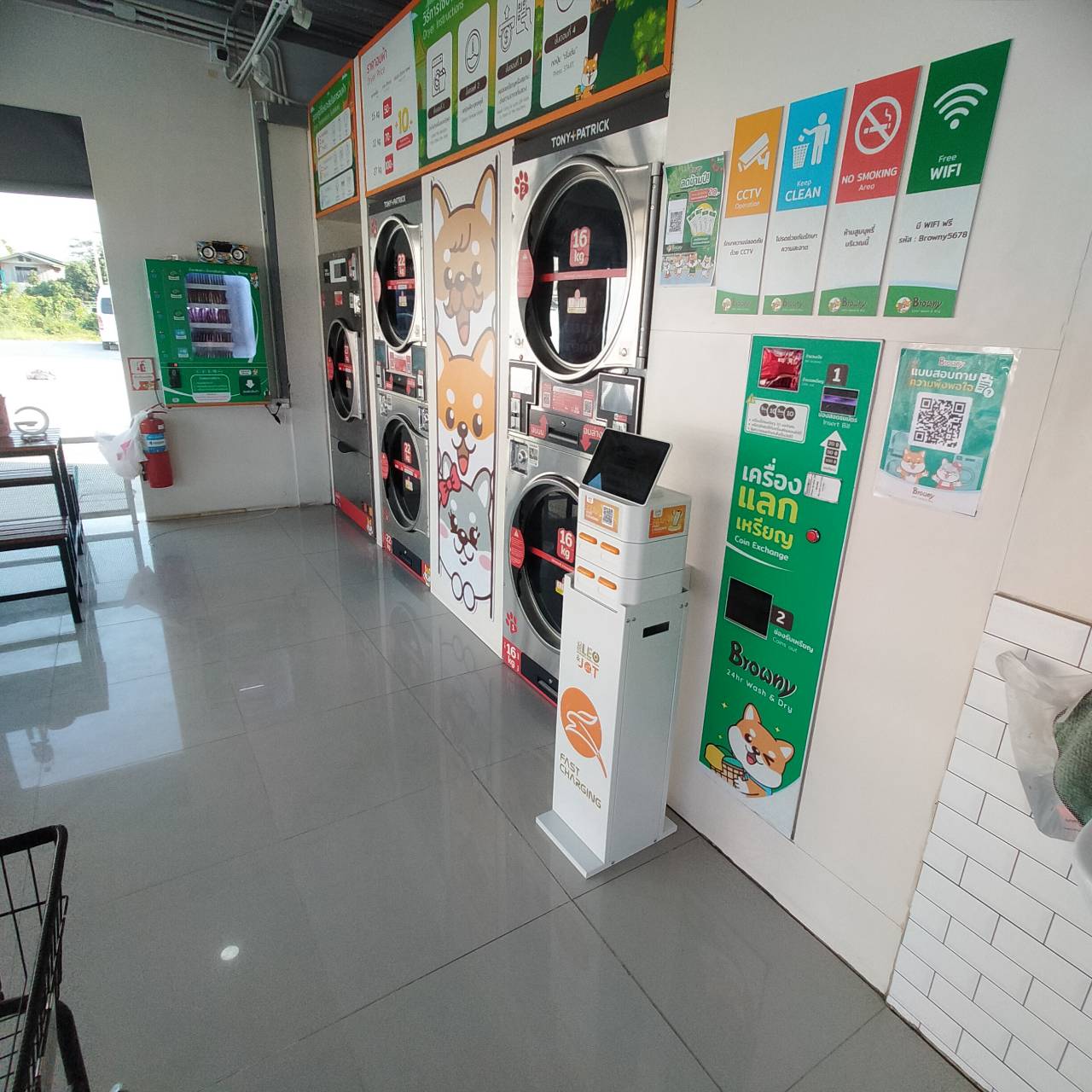 หัวใจสำคัญของ Browny Wash & Dry คือแนวคิด Love & Care ที่มุ่งเน้นการออกแบบบริการที่ครอบคลุมมากกว่าการซักผ้า ตั้งแต่การเลือกใช้เครื่องซักและอบผ้าระดับอุตสาหกรรมที่มีประสิทธิภาพสูง ไปจนถึงระบบดูแลความปลอดภัยและสิ่งอำนวยความสะดวก เพื่อสร้างความอุ่นใจในทุกครั้งที่เข้ามาใช้บริการ ไม่ว่าจะเป็น