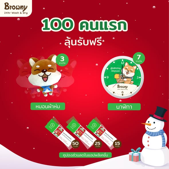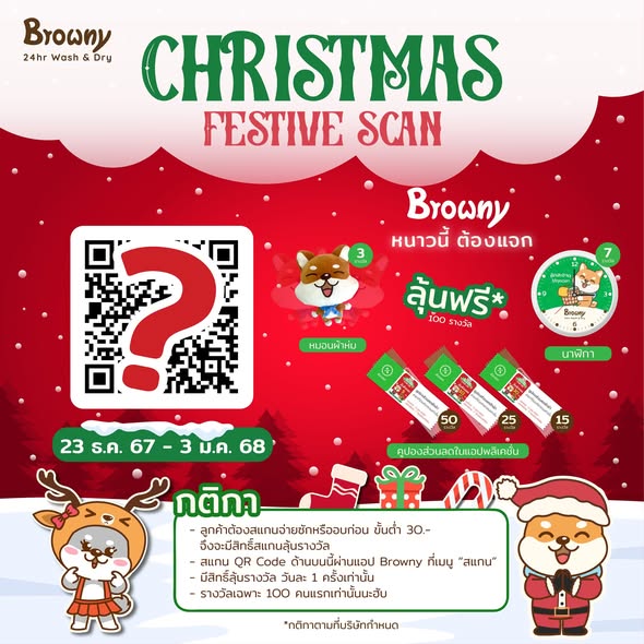 “ซัก-อบ ลุ้นโชค… ต้อนรับคริสต์มาสและปีใหม่!” น้อง Browny ชวนพี่ๆ มาสะบัดผ้าสู้ลมหนาว พร้อมลุ้นรับของขวัญสุด Exclusive ไปกอดให้อุ่นใจ แค่ซักหรืออบผ่านแอป ก็มีสิทธิ์เป็นผู้โชคดีแล้วฮับ!